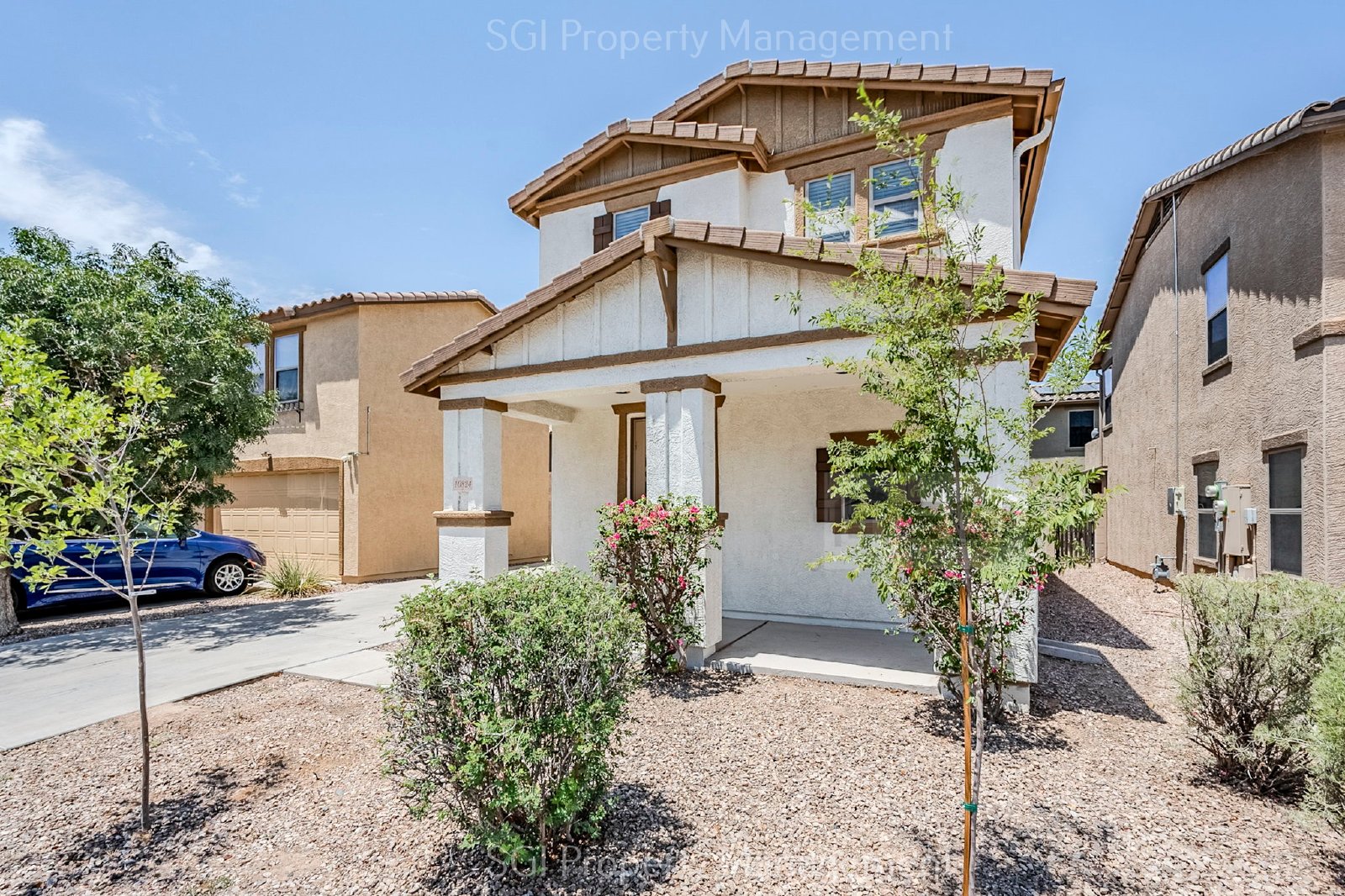 Welcome to this beautiful home in Beautiful Camelback Ranch! Newly painted, new vinyl plank flooring, new blinds and newer stainless steel kitchen appliances. Downstairs has a full bath, 1 bedroom/office, large living room, dinning room and kitchen. Upstairs includes primary suite with a full bathroom, 2 additional bedrooms, full bathroom and laundry room! Low maintenance backyard, 2 car garage and long driveway for multiple vehicles. Near State Farm Stadium, West Gate Shopping Center and Restaurants! Lessee to verify all facts. Pets welcome.