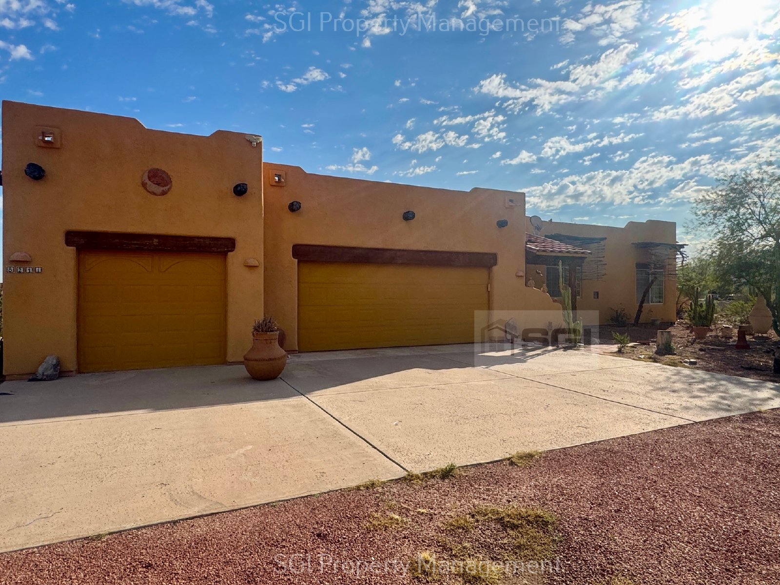 Quiet and Secluded, this beautiful private custom home sits on nearly a 2 acre lot at the base of the Estrellas surrounded by Mountain Views! Enjoy Southwest charm in this Santa Fe style home with large bark peeled wooden beams, Saltillo Tile, tile countertops and Kiva fireplace in both the living room and master bedroom. HUGE garage with space for 3 cars, plus ATVs, motorcycles, bikes, kayaks etc., and workspace. Additional parking for motorhome, fifth-wheel, boat, etc. Master bath has double sinks and separate shower and tub. Backyard is an entertainer's paradise with covered patio and a negative edge pool! The 19,000 acre Estrella Mountain Regional Park is at your doorstep offering hiking and mountain biking. No HOA! Lessee to verify all information.